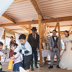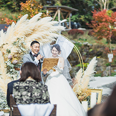 自然の風や光に包まれて、まるで海外のようなセレモニーを。開放感あふれる森の中のガーデンで、心に残るひとときを演出します。