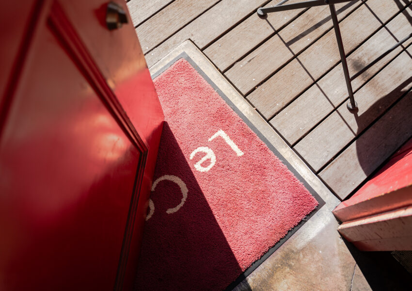 かわいらしい赤い扉がお出迎え -