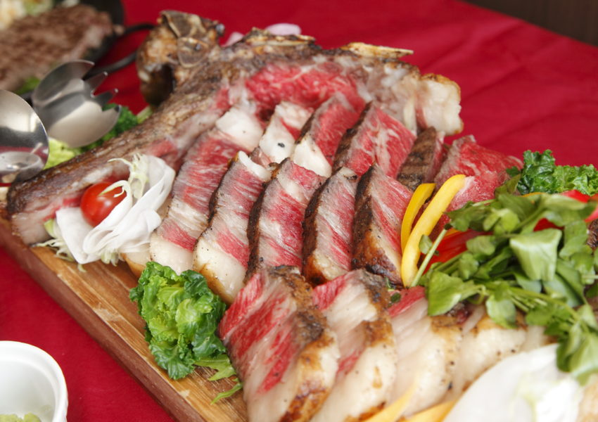 イルターボロならではのトマホーク(熟成肉)を新郎からサーブ -