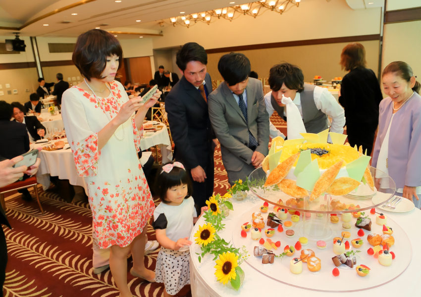 彼の手作りのメインボード、ケーキのデザイン、ドレス、ブーケの色合わせなどいろいろ悩みましたが、その都度プランナーさんに相談しながら1年がかりで当日を迎えました。