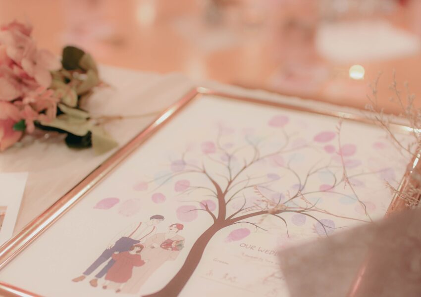 • 挙式で署名した結婚証明書はゲストみんなと作ったウエディングツリー
