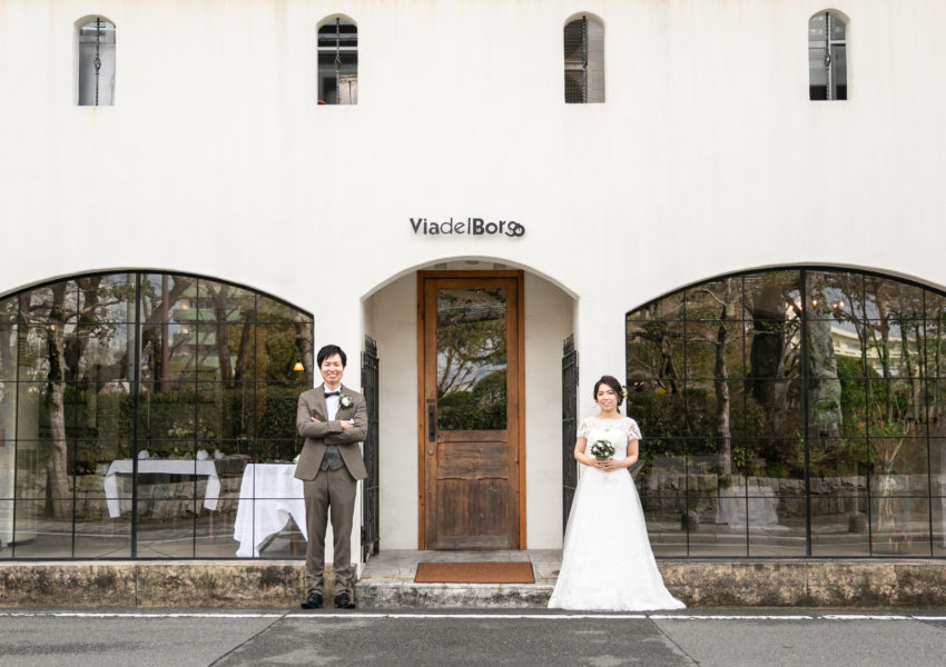 ふたりが出会った思い出の場所でロケ撮。パーティー会場とドレス選びにはこだわりました。